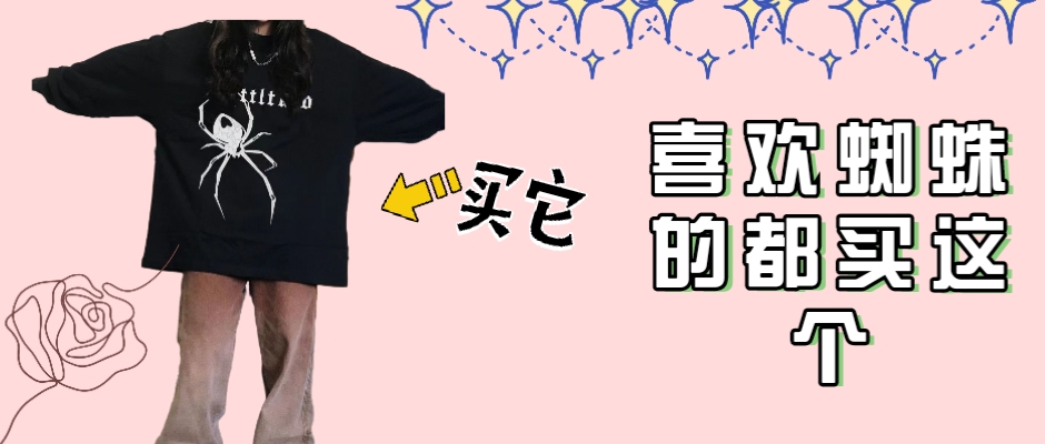 YSYOURS美式高街蜘蛛长袖t恤女纯棉重磅潮牌设计感小众打底衫上衣