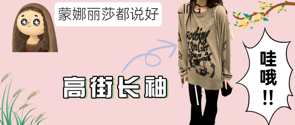 EFOLONG纯棉韩系复古设计感星星印花长袖T恤女宽松美式ins圆领衫