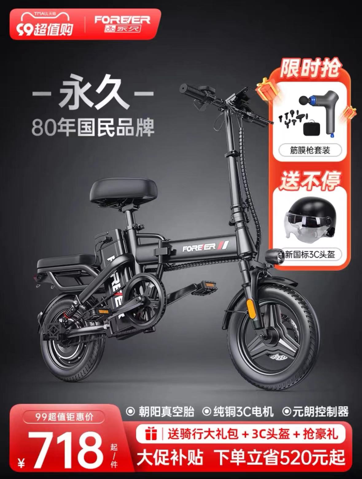 永久新国标折叠电动自行车小型代驾电动车锂电池助力代步电瓶车女