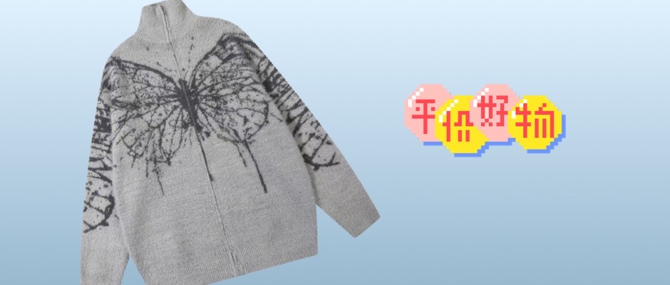 Feel lonely 秋季美式蝴蝶提花高领毛衣慵懒风oversize情侣外套潮