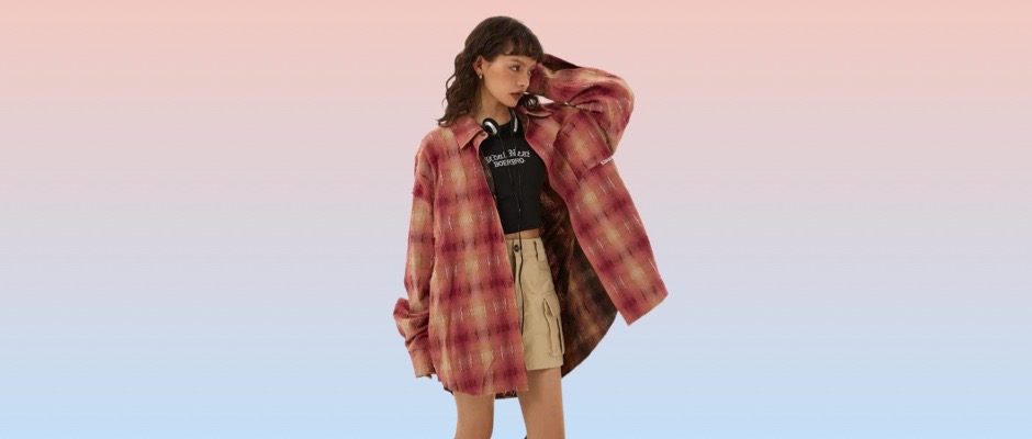 一家卖衣服的小店 复古vintage格子衬衫女外套长袖宽松衬衣上衣秋