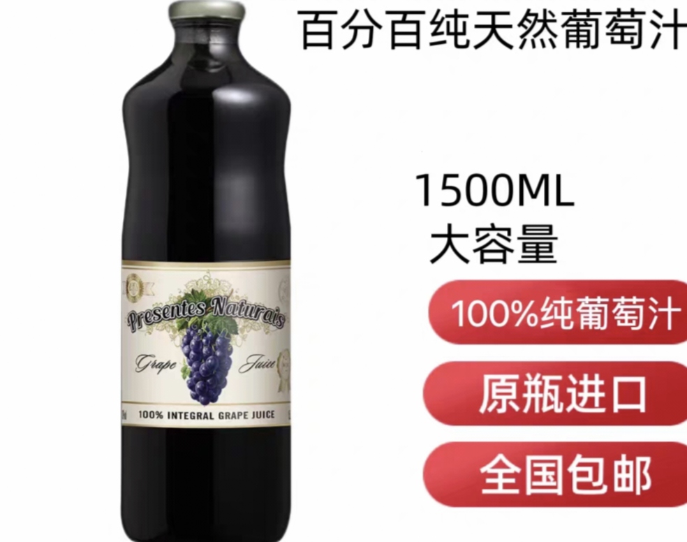 PRESENTES巴西葡萄汁进口天赐100%纯天然葡萄汁1500ML大容量果汁
