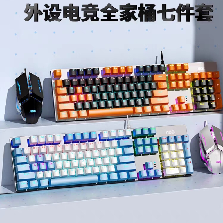 AOC机械键盘鼠标套装耳机三件套青轴黑茶红轴有线电竞外设全家桶