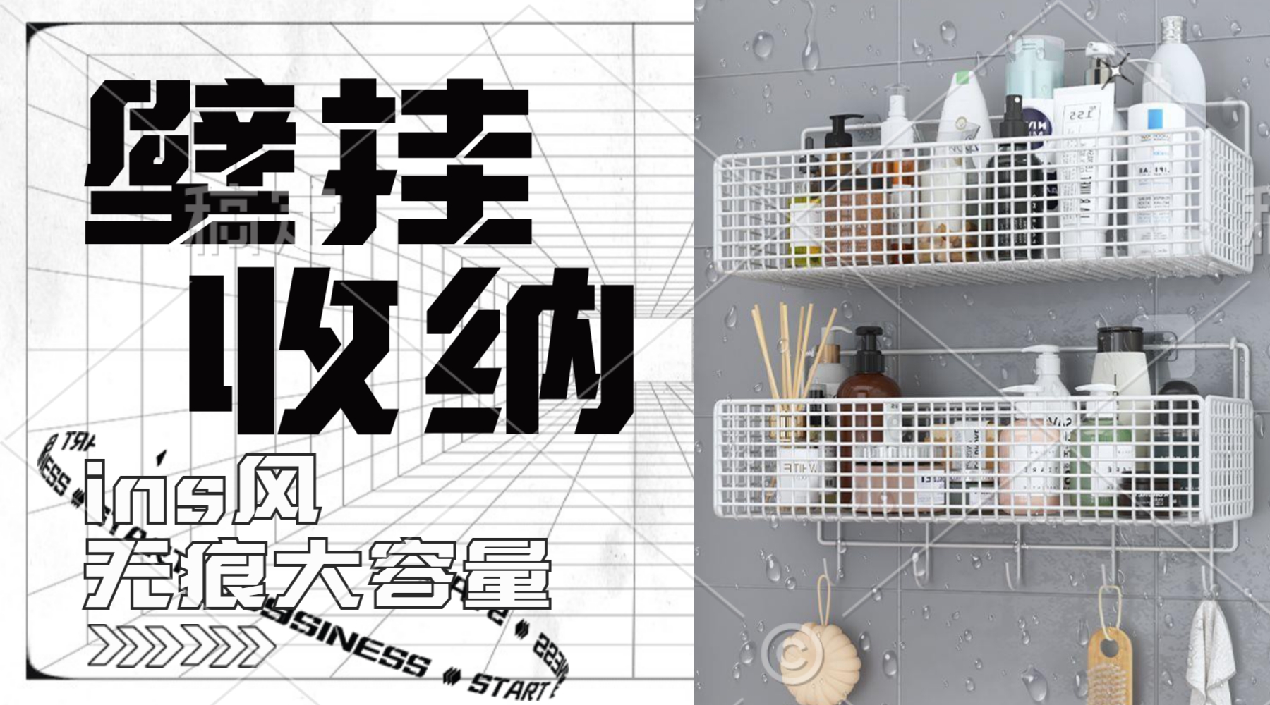 免打孔浴室置物架,间距可自由调节,加大容量收纳,镂空沥水设计。