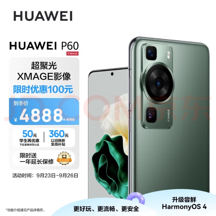 华为/HUAWEI P60 超聚光XMAGE影像 双向北斗卫星消息 256GB 翡冷翠 鸿蒙曲面屏 智能旗舰手机