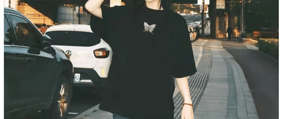 CHAO WASSUP美式复古立体蝴蝶设计感正肩短袖t恤女夏情侣宽松体恤