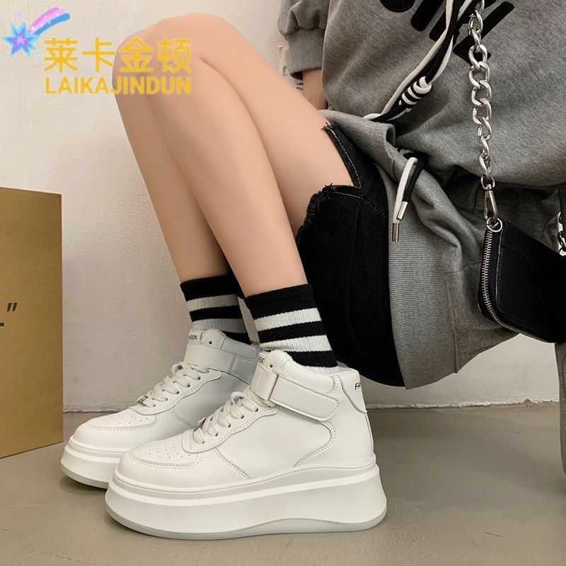 韩版软皮ins超火厚底松糕小白鞋高帮鞋透明网红爆款女鞋