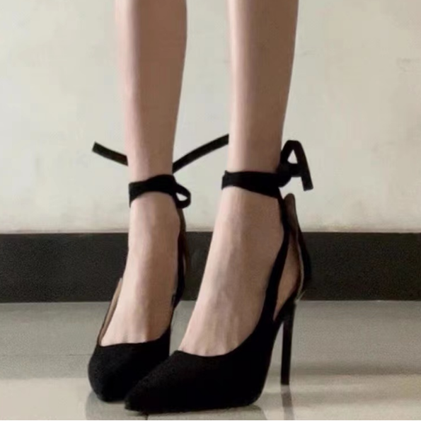 法式气质高跟鞋女2022欧美风黑色尖头性感交叉绑带春秋新款单鞋子