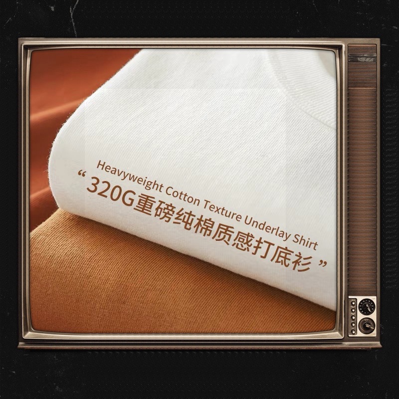 美式320g重磅长袖t恤男春秋宽松厚实不透打底衫纯色纯棉圆领卫衣
