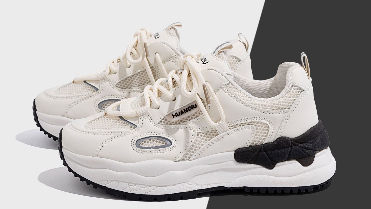 HUANQIU 环球高级感小白鞋女夏季2023新款饼干鞋厚底百搭休闲板鞋 白黑