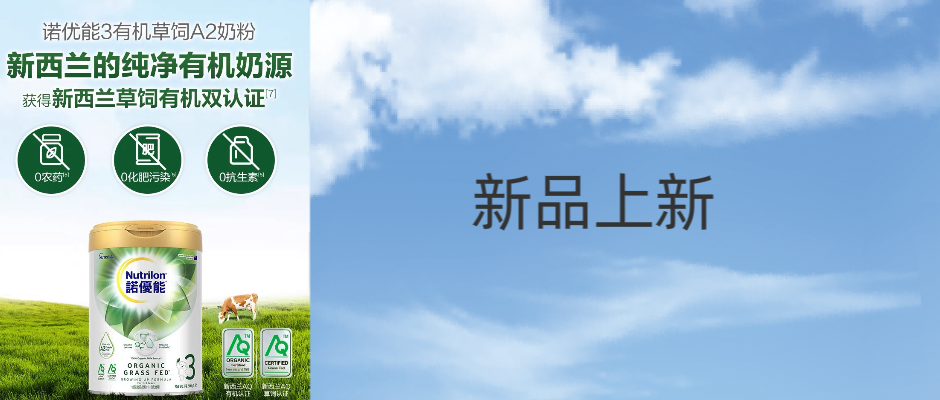 新西兰进口诺优能有机草饲A2三段1-3岁900g婴幼儿配方奶粉3段