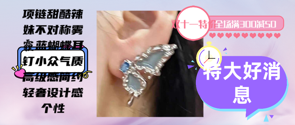项链甜酷辣妹不对称雾霾蓝蝴蝶耳钉小众气质高级感简约轻奢设计感个性