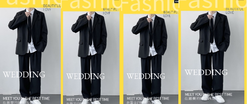 DK制服一套休闲西装男套装痞帅 七分裤 黑 X