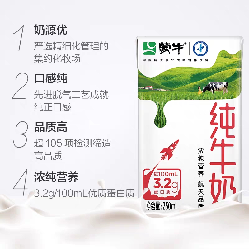 蒙牛纯牛奶250ml*16盒整箱营养健康早餐纯奶 1件装
