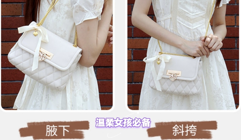 欧时纳包包2023新款包包女时尚斜挎包链条包单肩少女蝴蝶结菱格包