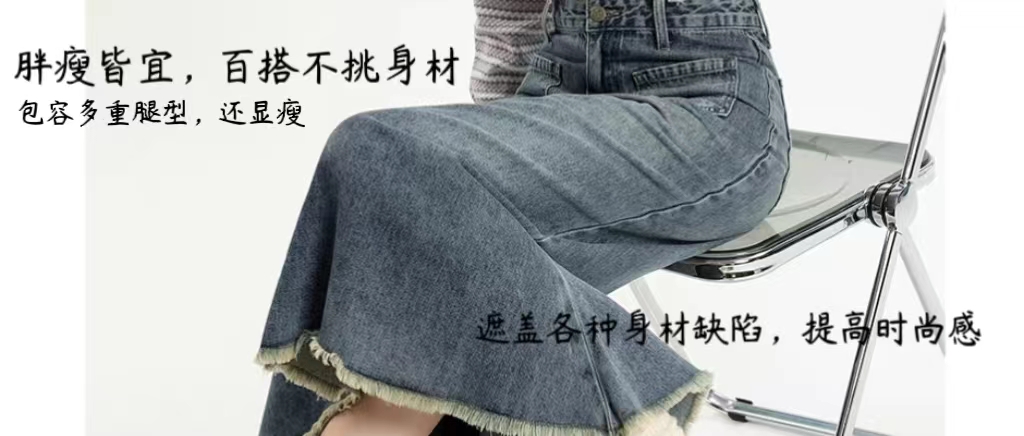 复古中长牛仔裙女春装2023新款春夏a字高腰显瘦包臀鱼尾半身裙子