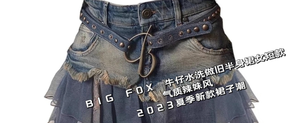 BIG FOX 牛仔水洗做旧半身裙女短款气质辣妹风2023夏季新款裙子潮