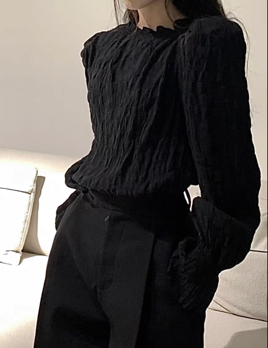 yiayia高级感气质黑色长袖衬衫女设计感小众宽松显瘦上衣秋