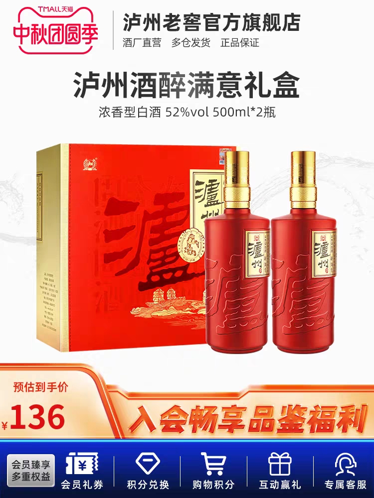 【中秋礼赠】泸州老窖泸州酒醉满意礼盒52度500ml*2瓶 浓香型白酒