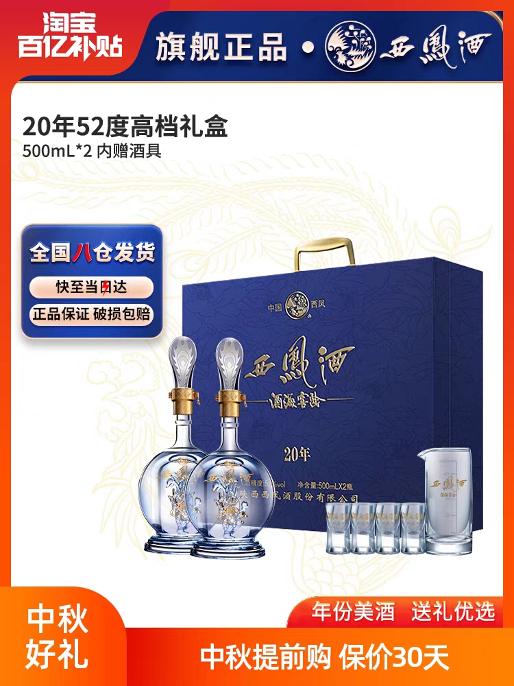 西凤酒官方旗舰店20年52度白酒礼盒2瓶装纯粮食凤香型高档送礼酒