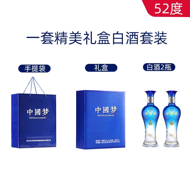中秋节送礼酒中国梦白酒52度浓香型礼盒装2瓶送长辈老丈人走亲戚