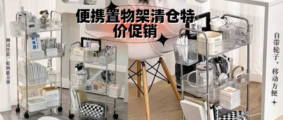 新疆包邮透明亚克力小推车床头卧室书架零食浴室移动化妆品置物架