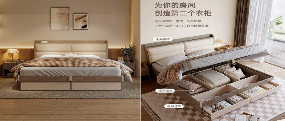现货直发 北欧简约风 双人床 储物