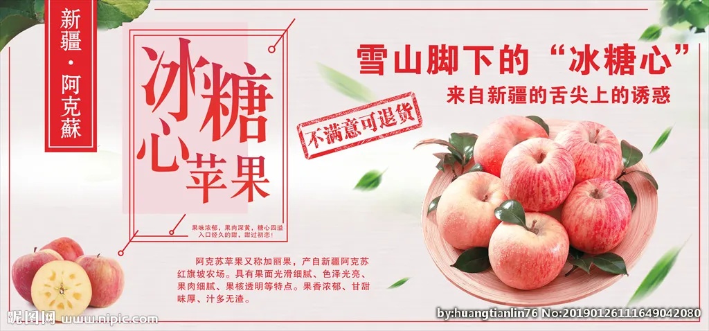 阿克苏,冰糖心;凭真心,胜千金。 阿克苏的冰糖心,鲜到你家我最亲。 我们只出售新疆最地道的特产——冰糖心苹果。 不远万里冰糖心,鲜到你家我最亲。 冰糖心苹果,咔嚓咔嚓,好吃到停不下来。 鲜是冰糖心,到处送欢心;你来我往意,家和万事兴。