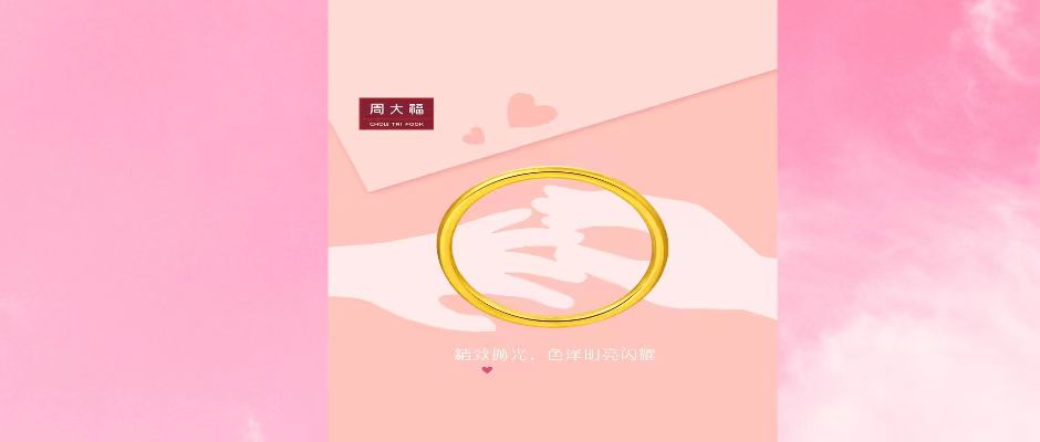 周大福简约素圈足金黄金戒指计价情侣婚戒EOF1