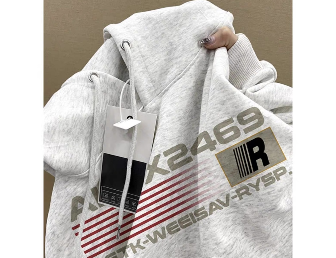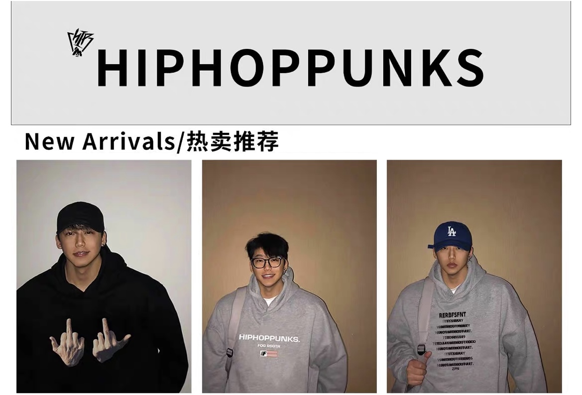 HIP潮牌美式重磅圆领卫衣潮流字母印花秋冬款加绒加厚上衣外套