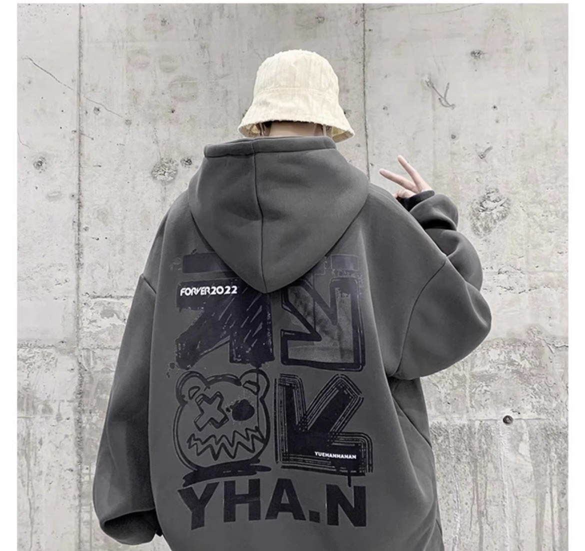 美式连帽花灰色卫衣女小个子秋冬复古vintage潮牌加绒上衣外套女