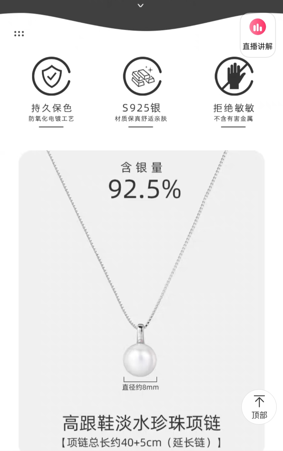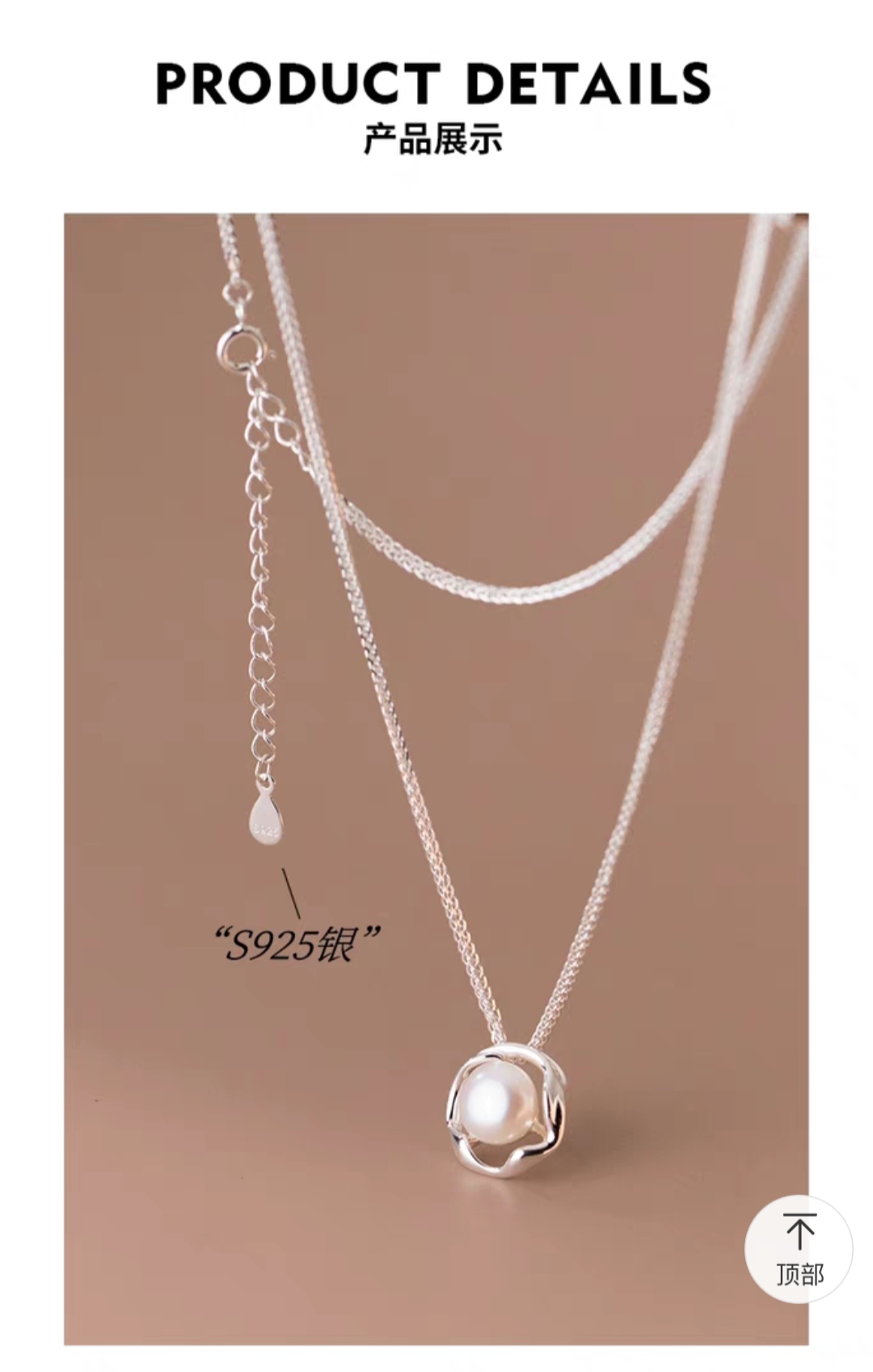 S925纯银珍珠吊坠项链2023年新款爆款气质锁骨链女高级感轻奢小众