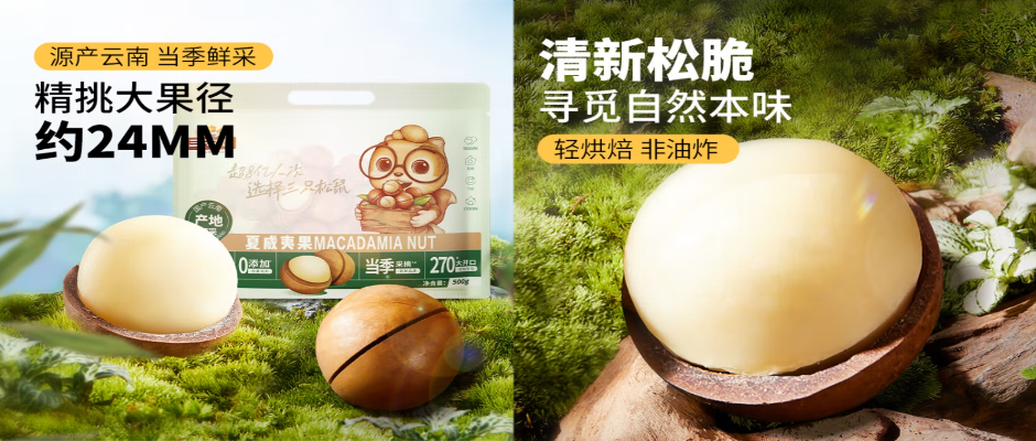 安心0添加,细品坚果原香,富含膳食红维、镁;含有维生素BI、精挑大果径,约24MM,奶香酥脆 颗粒饱满