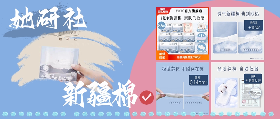 她研社新疆纯棉卫生巾超薄透气日夜组合姨妈巾86片