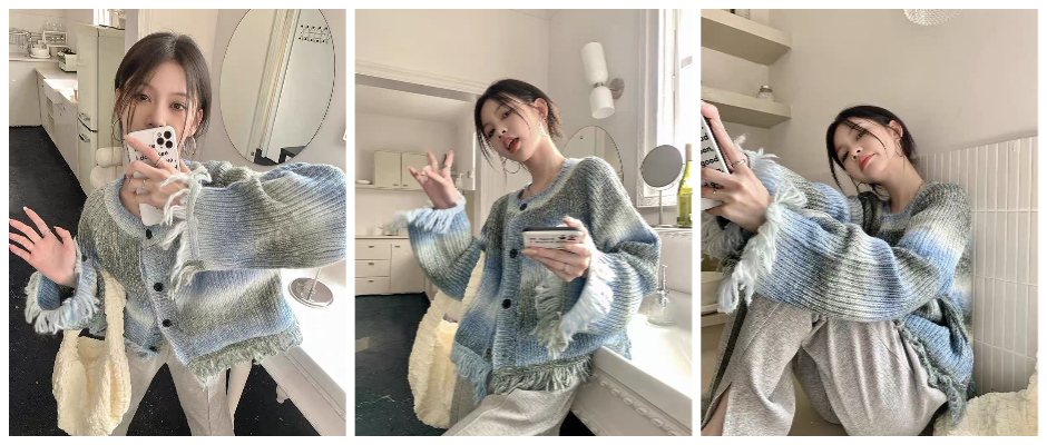 设计感渐变色开衫流苏毛衣外套女秋冬高级感简约百搭短款针织衫女 S