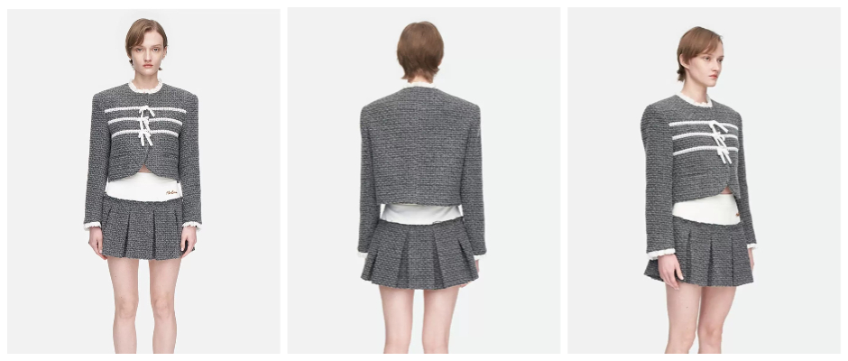 HERLIAN 23年秋新品蕾丝边蝴蝶结粗花呢小香风短外套 S