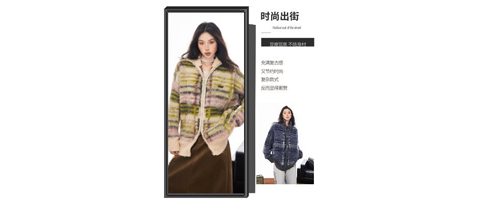 MAIKAO美式复古条纹立领开衫毛衣外套女秋冬慵懒风毛绒针织衫上衣