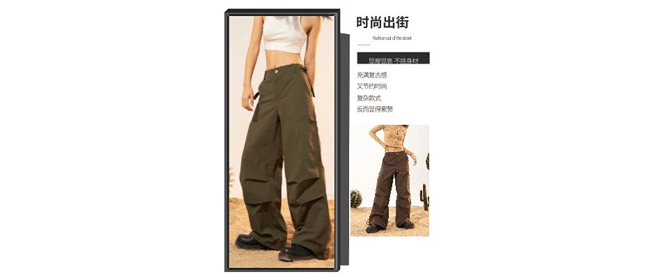 MAIKAO 美式复古速干工装裤女小个子降落伞兵裤宽松阔腿休闲裤子