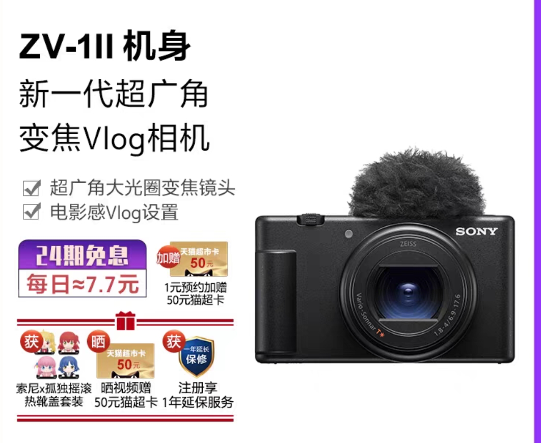 Sony/索尼 ZV-1 II Vlog相机 ZV1M2/ZV-1M2 新一代超广角变焦相机
