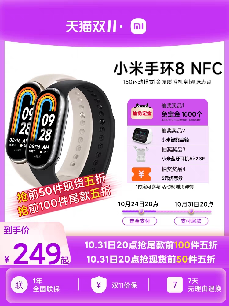 小米手环8NFC健康运动防水血氧心率智能手环手表长续航