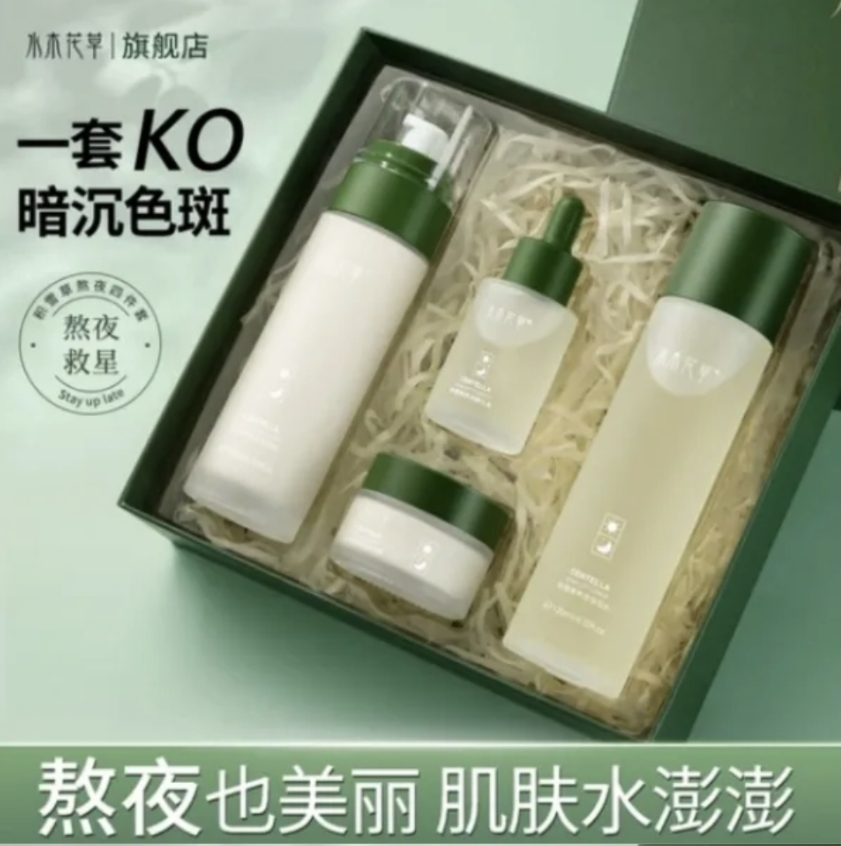 水木花草水乳套装积雪草熬夜四件套护肤品套装 滋润