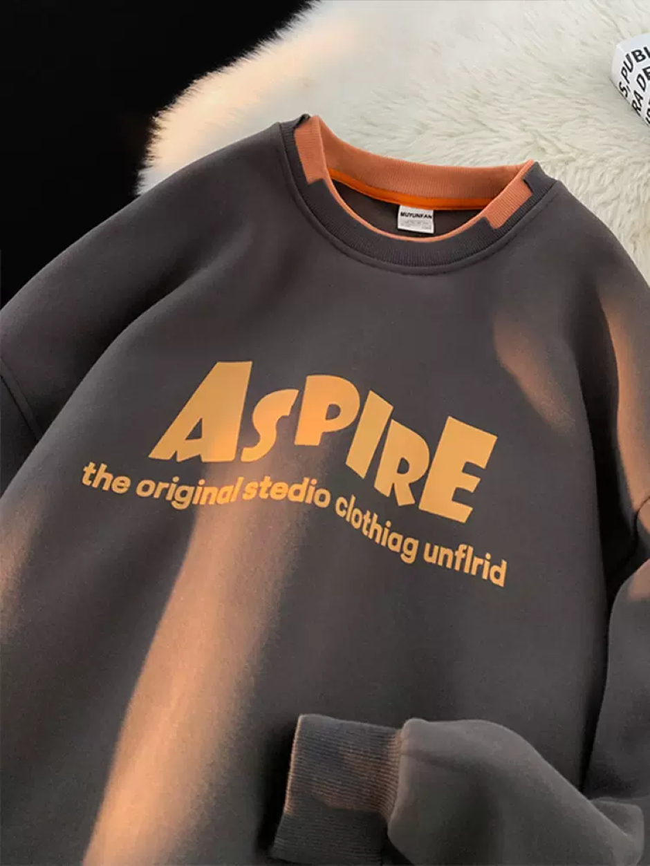 美式复古重磅假两件卫衣男生春秋冬上衣服青少年圆领长袖外套潮牌