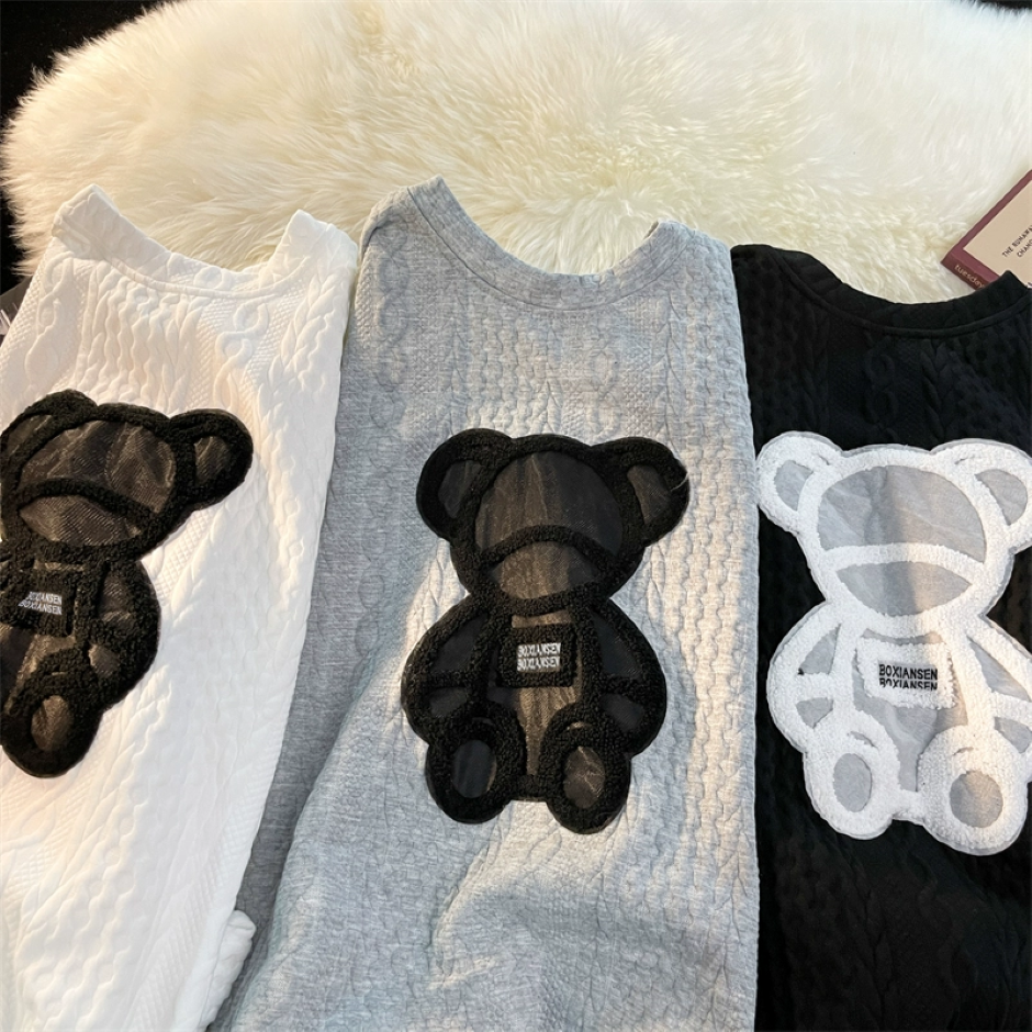 美式潮牌小熊春秋季长袖T恤联名黑色卫衣情侣宽松潮ins