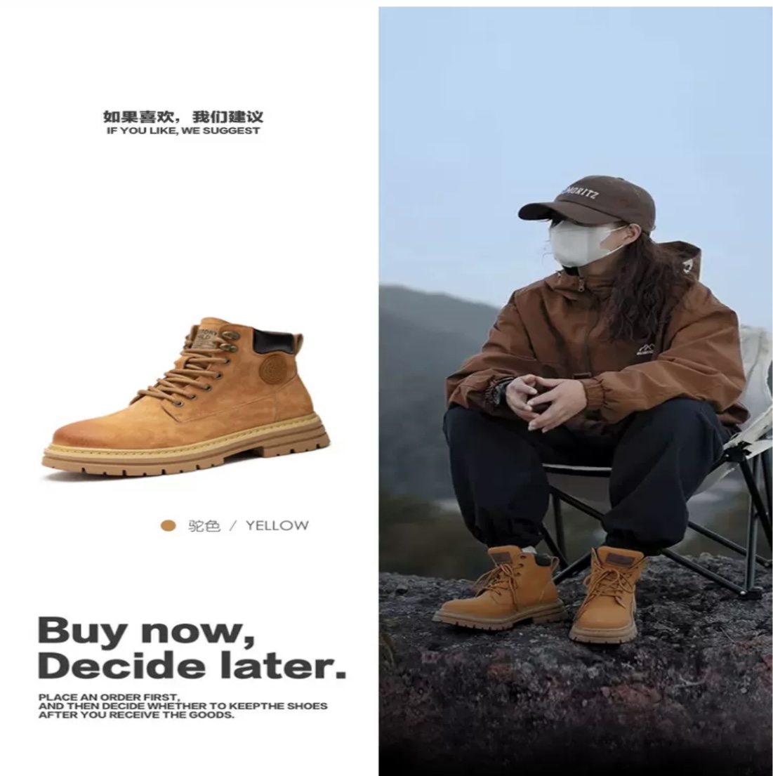 【梅西】马丁靴男鞋秋季真皮工装鞋子男士户外厚底秋季大黄靴子潮