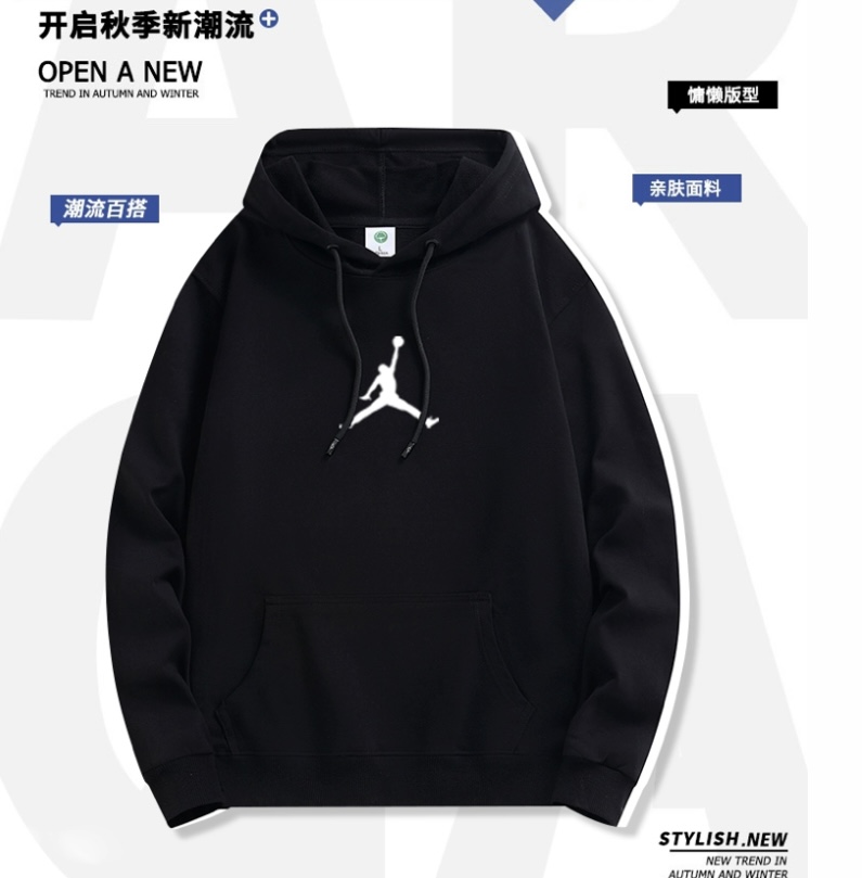 NASA联名飞人aj卫衣男纯棉秋冬款休闲卫衣加绒加厚宽松连帽卫衣男
