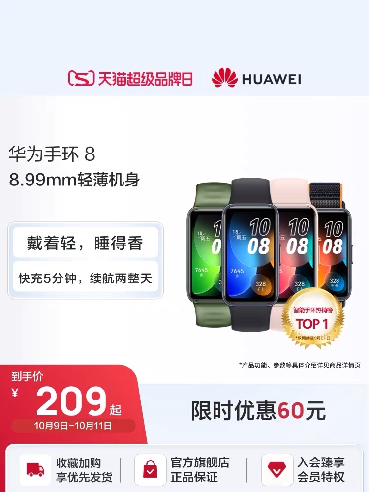 【热销手环】华为手环8 智能手环超薄血氧检测全面屏快充长续航运动手环 手表心率监测支持NFC 手环7升级