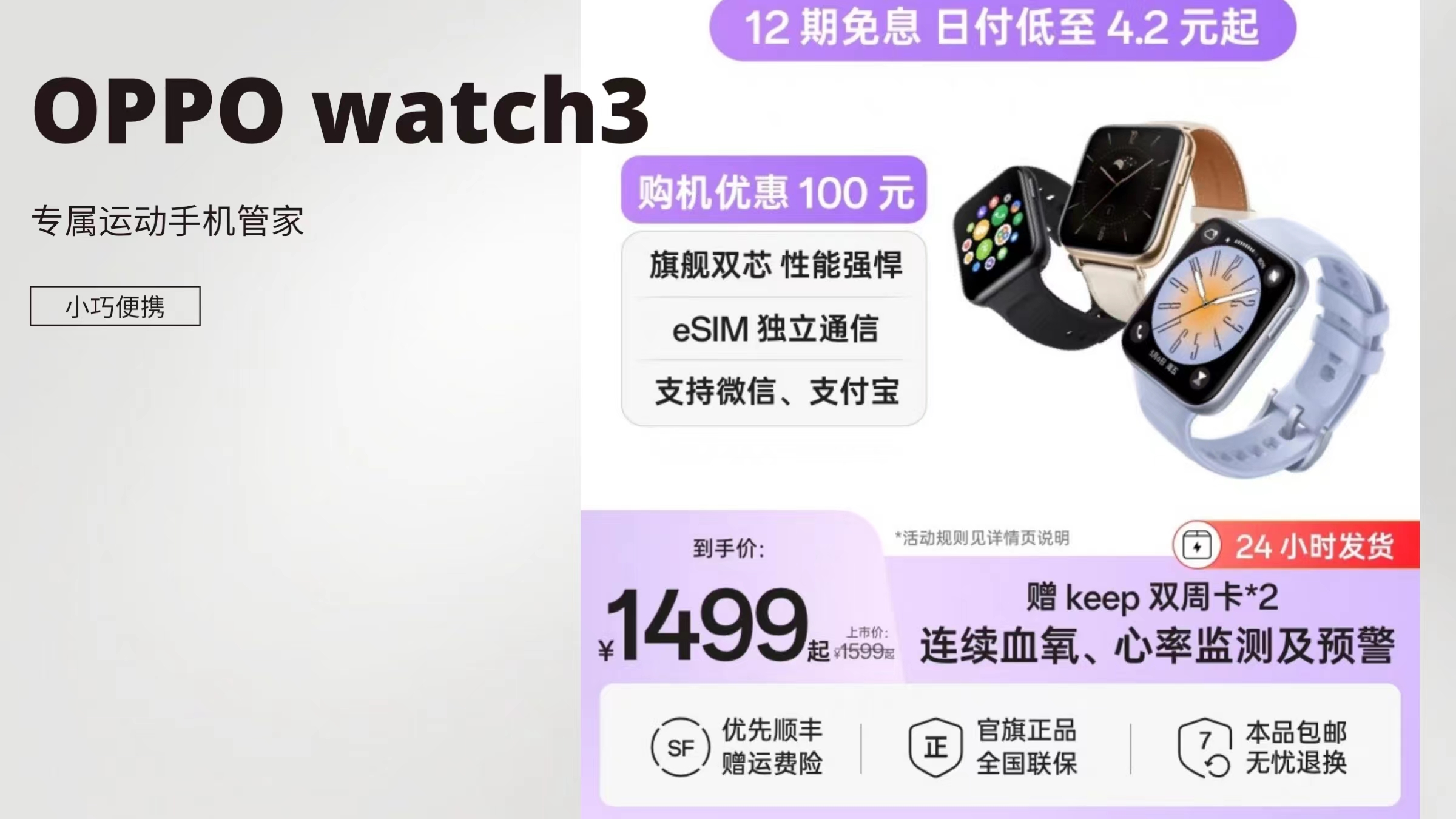 OPPO Watch 3系列全智能手表血氧监测及预警新品esim独立通信男女运动防水学生心率监测一加手表watch3pro