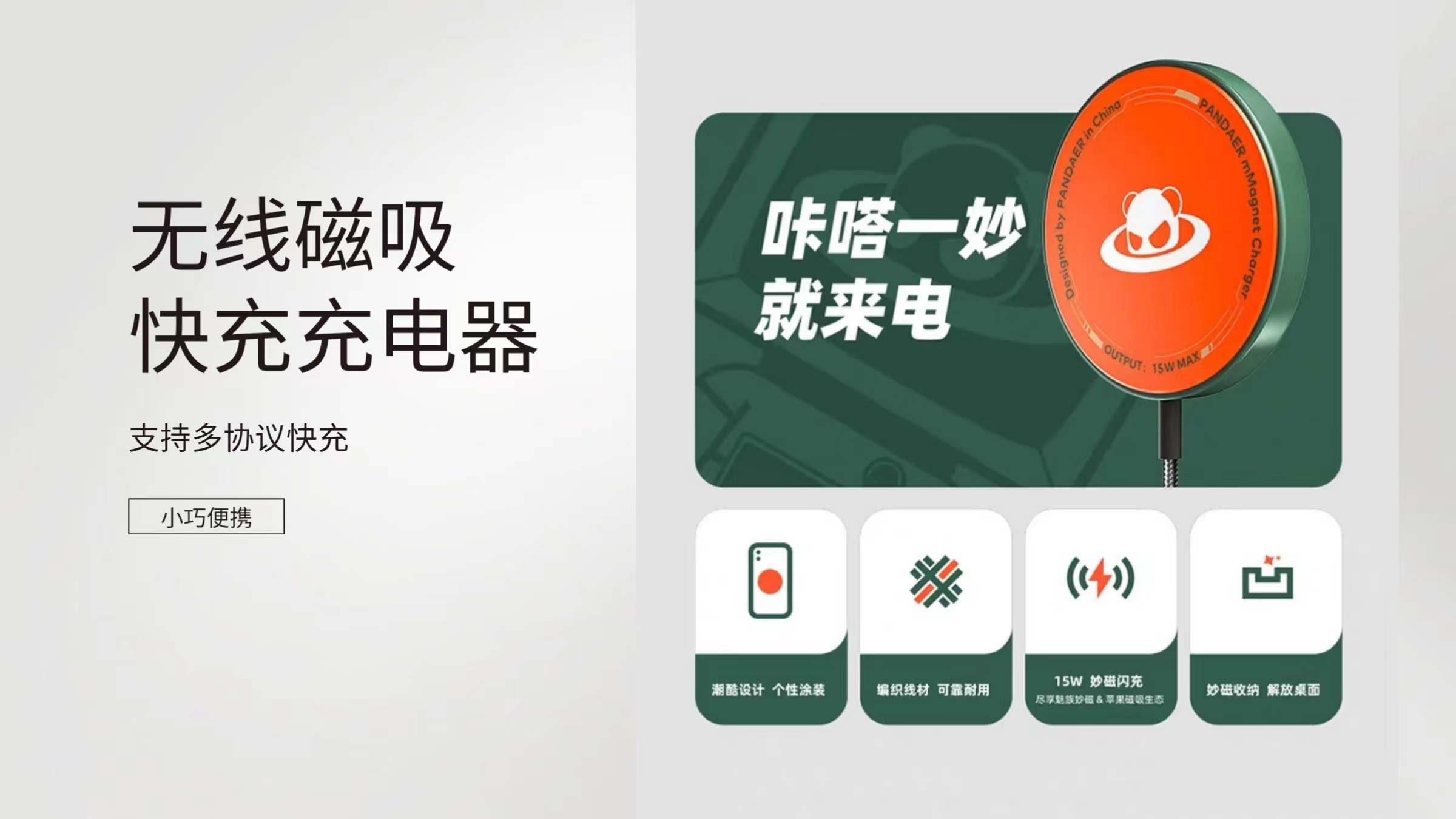 【适用苹果品牌】魅族PANDAER无线磁吸充电器15W手机快充正品苹果13ProMax桌面12