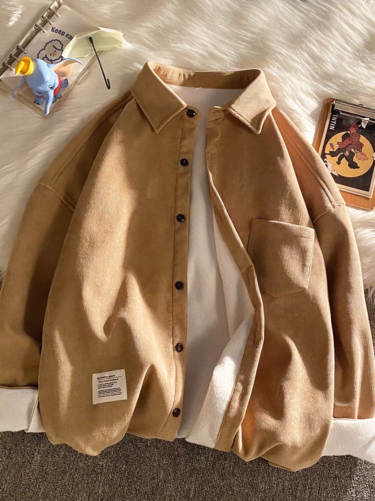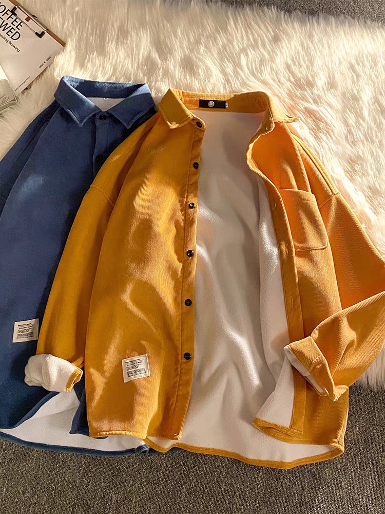 灯芯绒衬衫男士长袖春秋韩版高级感学生休闲外套帅气保暖加绒衬衣
