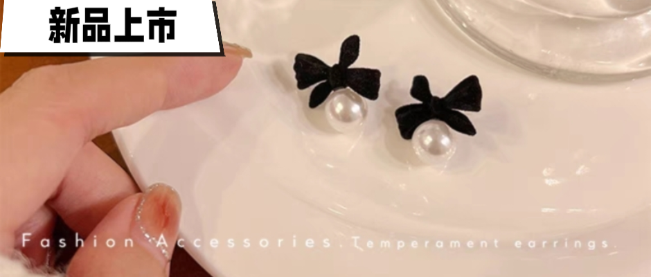 黑色蝴蝶结珍珠耳钉